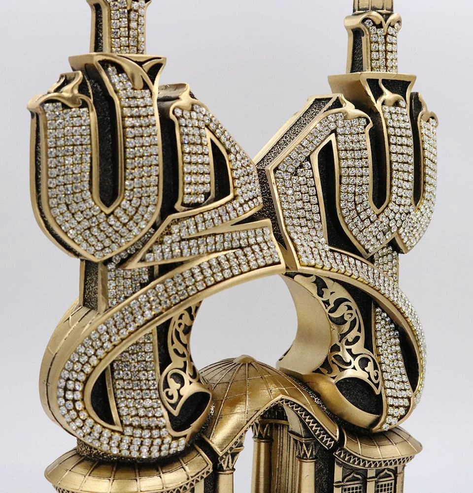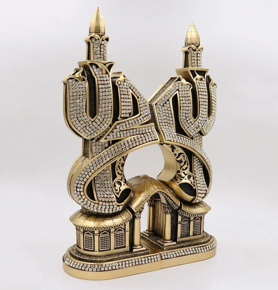 A beautiful ornament Allah and mohamad . Made from resin decorated with velvet and crystals stones