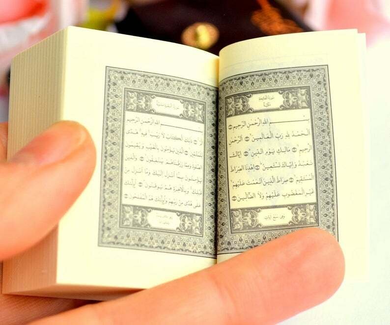 -Qur’an book is 2 inch X 1.5 in,3/4 Inch THICK. Quran book Cover design may be different than image.