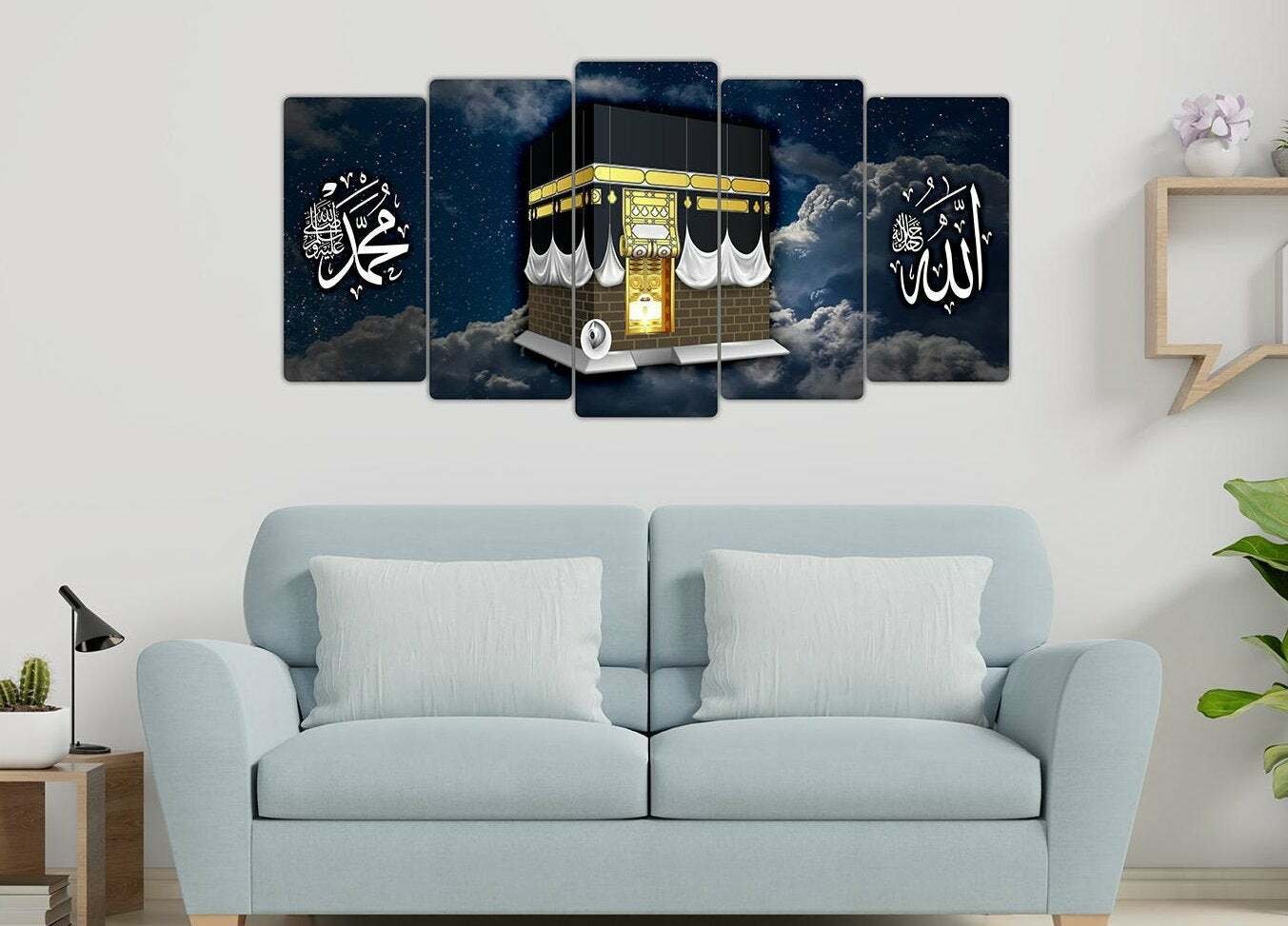5 pcs very beautiful wood frame Islam size 100 x 50cm Allah Mohamad Kabaa Drawing no holes no drilling RRP 50 pound