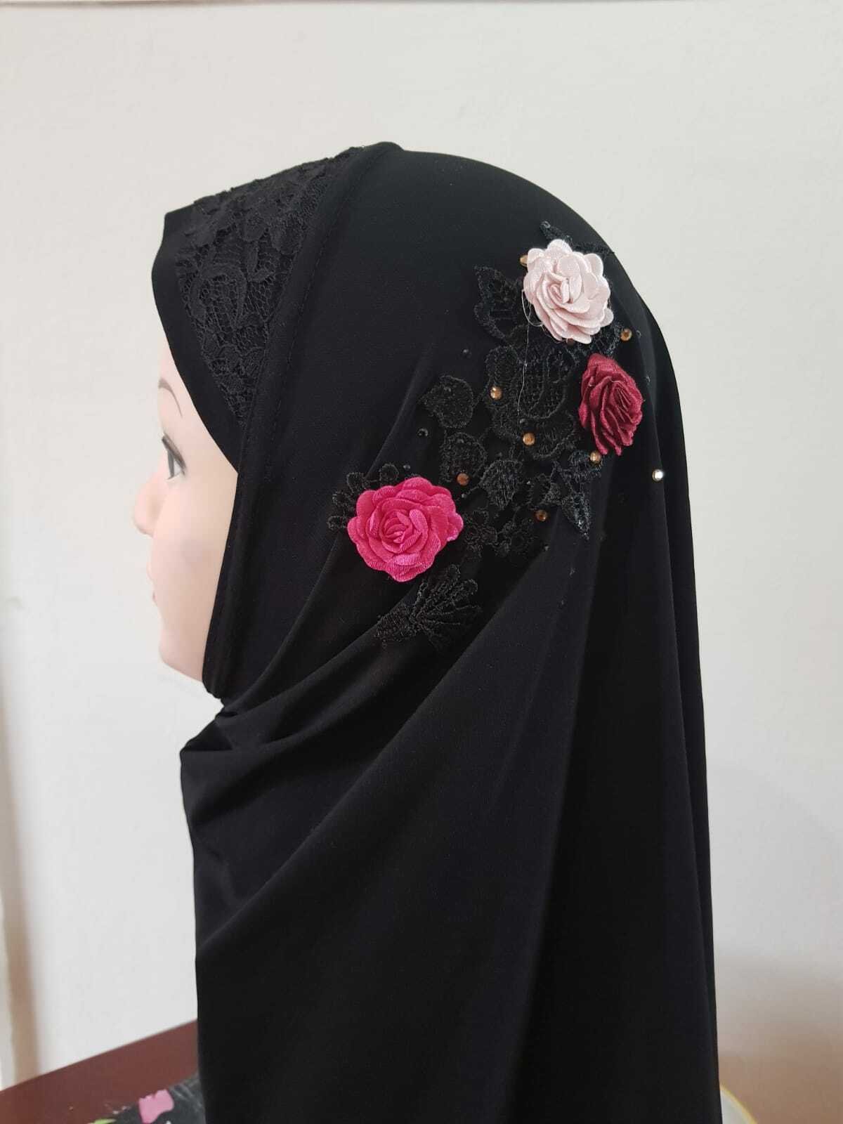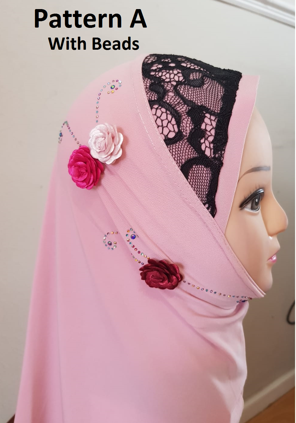 Fancy 1 piece Beautiful Quality Children kids Medium Hijab with flowers and beads Head cover scarf