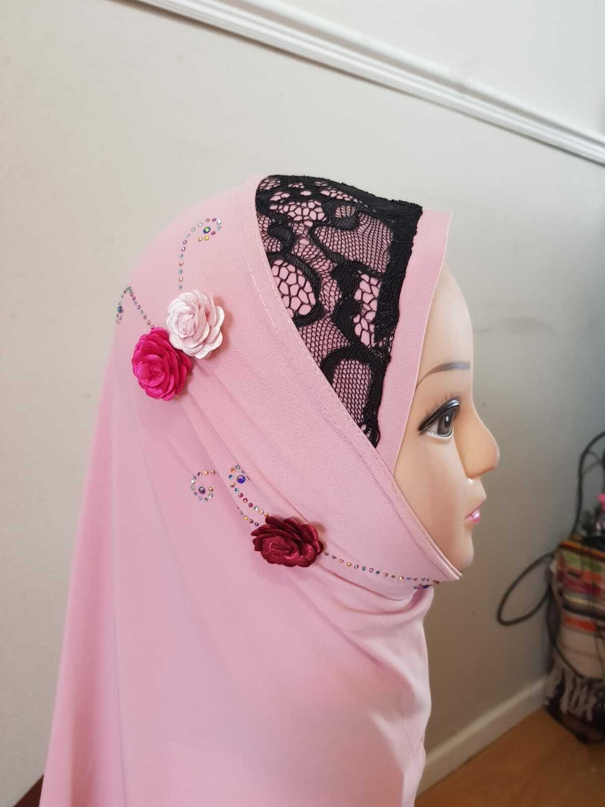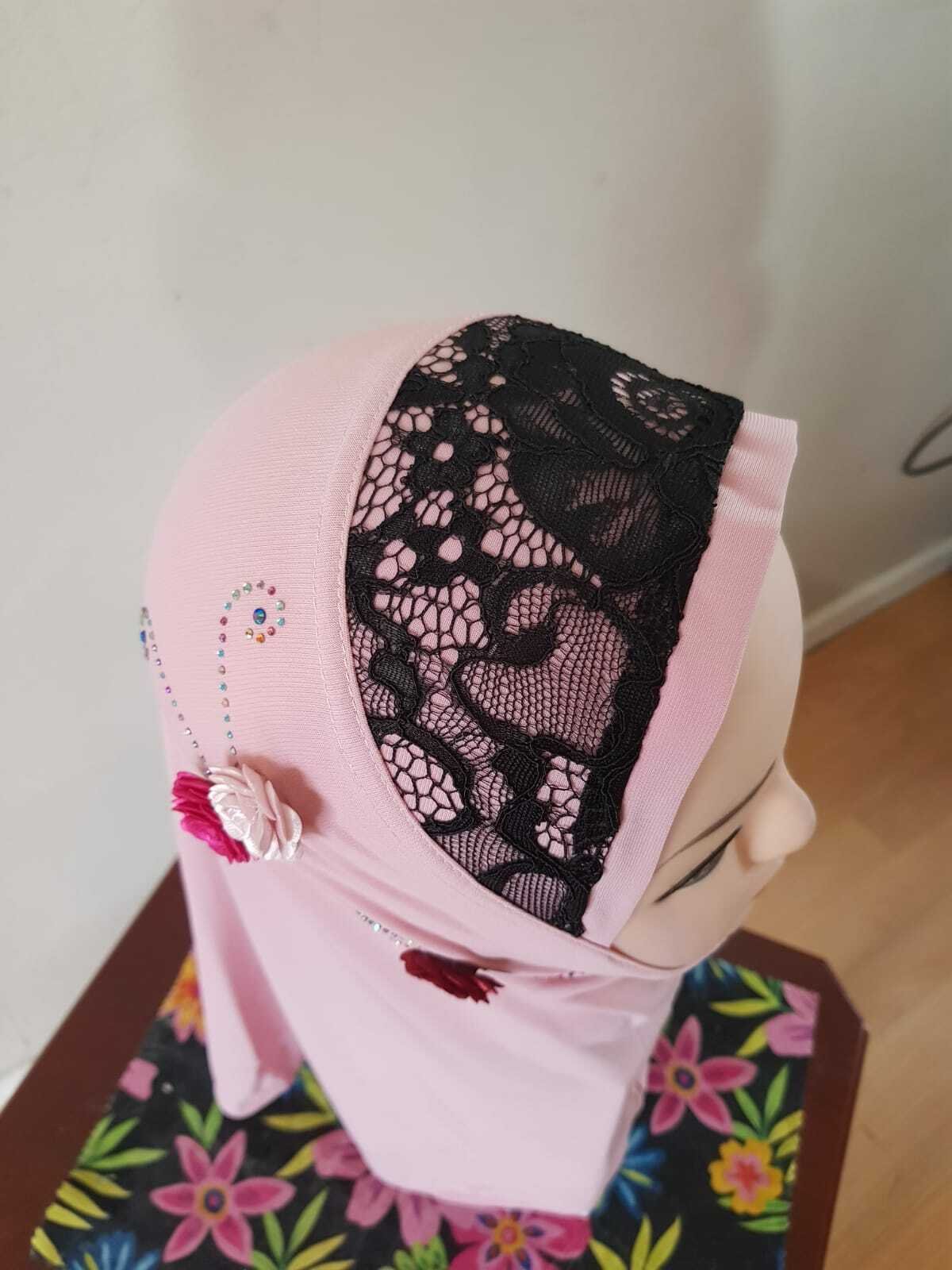 Be the first to review “Fancy 1 piece Beautiful Quality Children kids Medium Hijab with flowers and beads Head cover scarf”