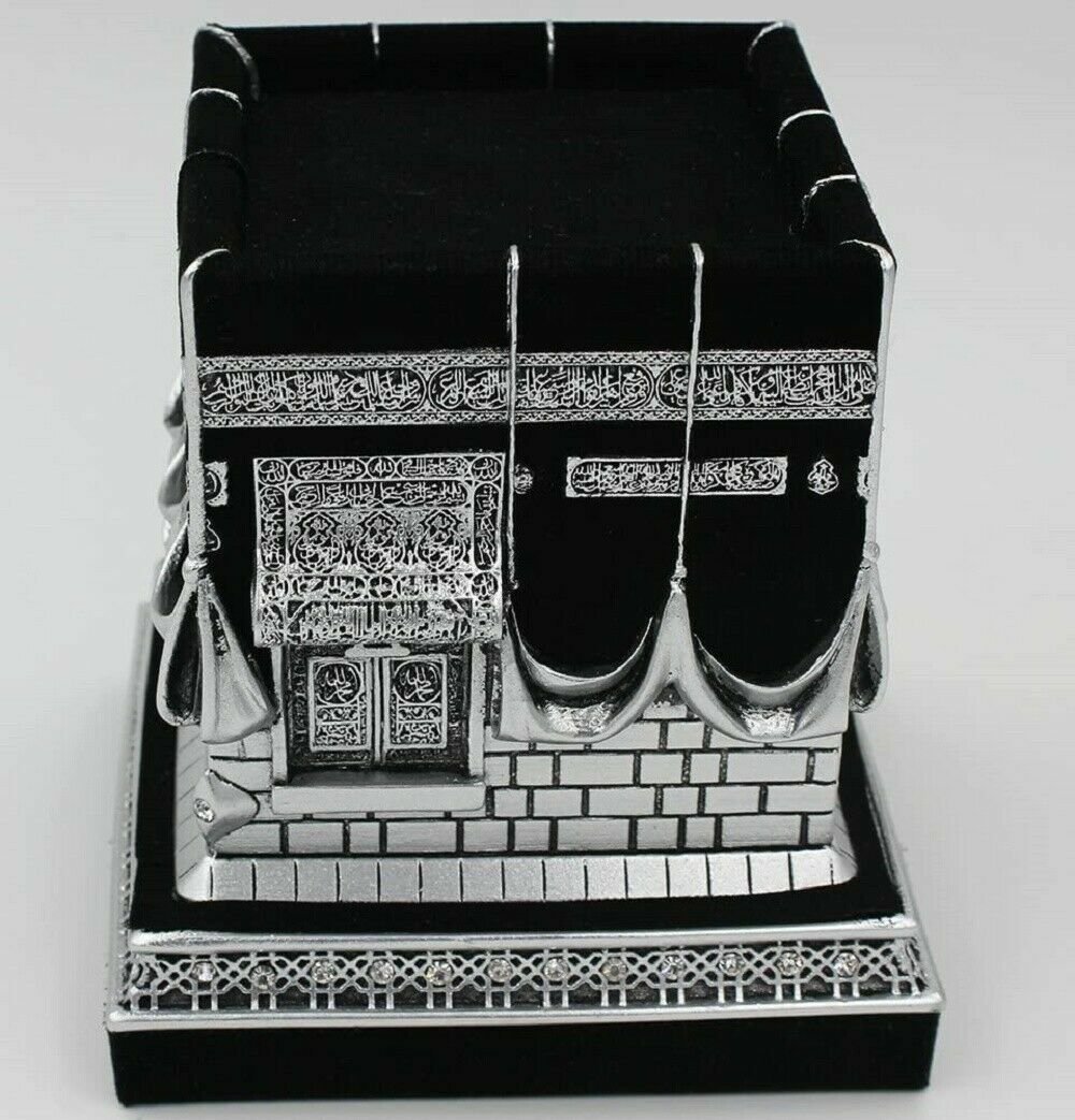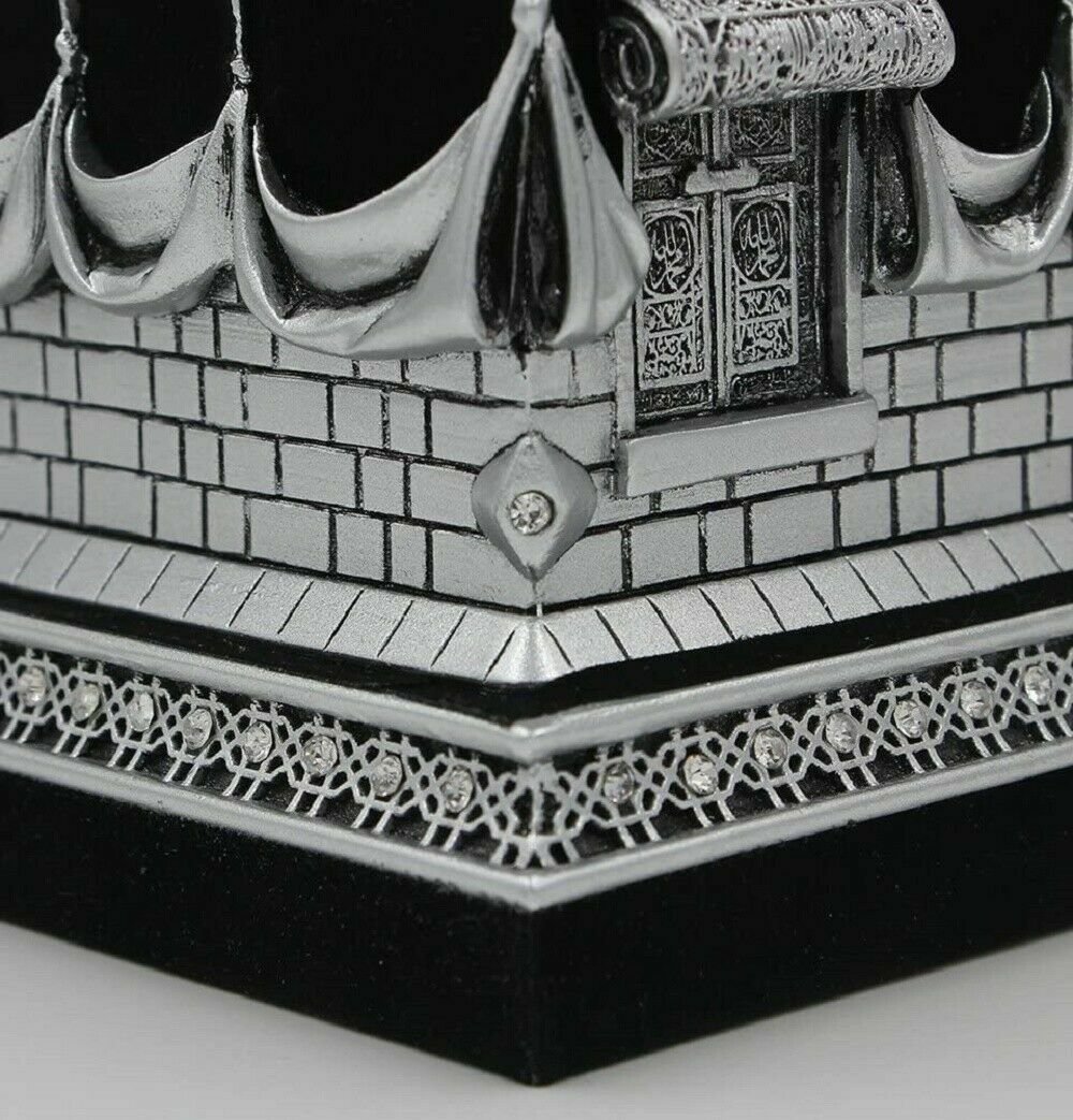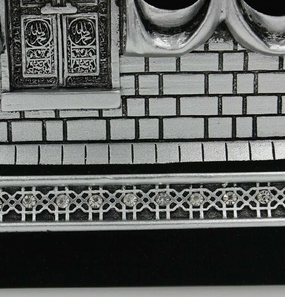 A beautiful ornament in the shape of the Holy Kaaba. Made from resin decorated with velvet and crystals stones
